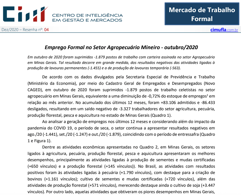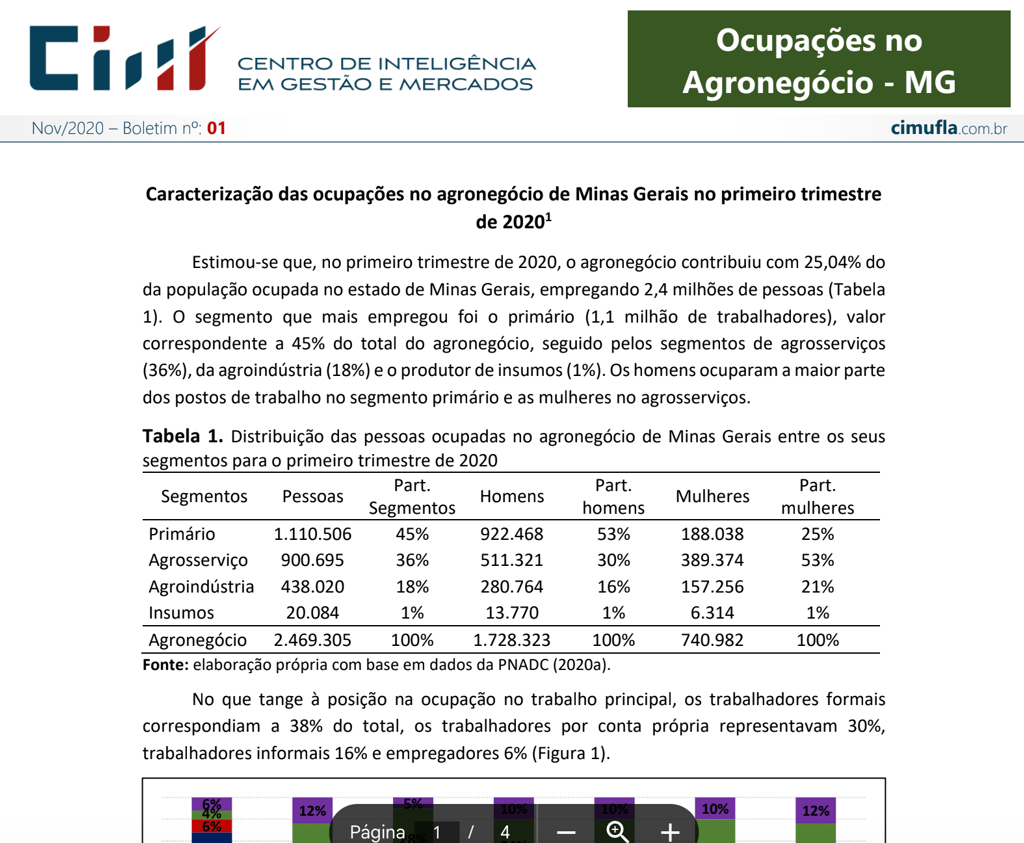 Caracterização das ocupações no agronegócio de Minas Gerais no quarto trimestre de 2020