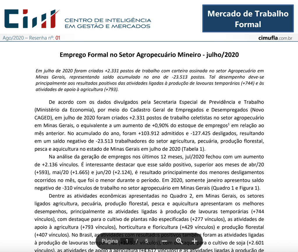 Caracterização das ocupações no agronegócio de Minas Gerais no primeiro trimestre de 2020