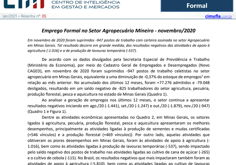Emprego Formal no Setor Agropecuário Mineiro - novembro/2020